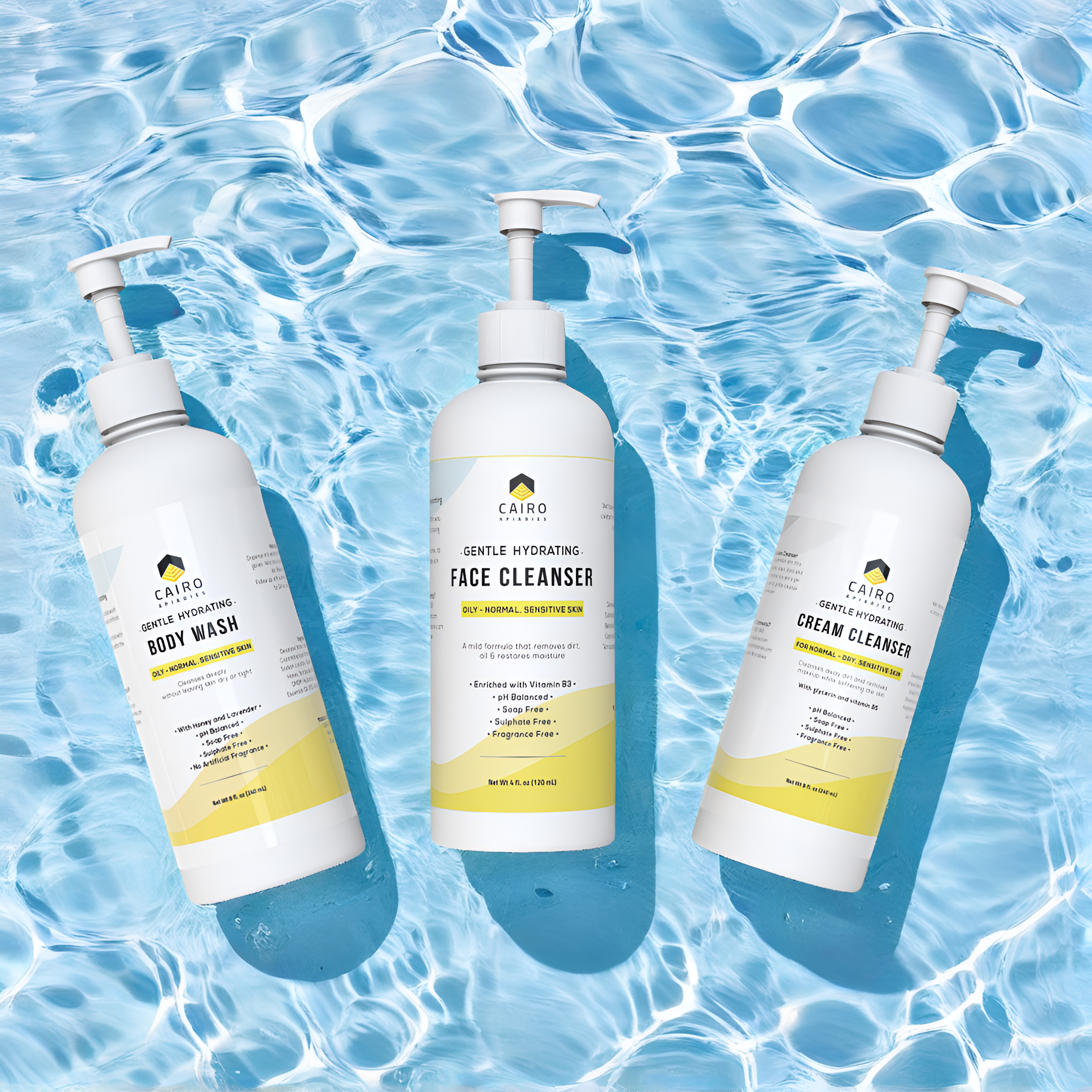 - Cairo Apiaries Gentle Hydrating Body Wash: Extend your gentle cleansing routine to your body with this nourishing body wash. Free from harsh ingredients, it pampers your skin and leaves it feeling refreshed.